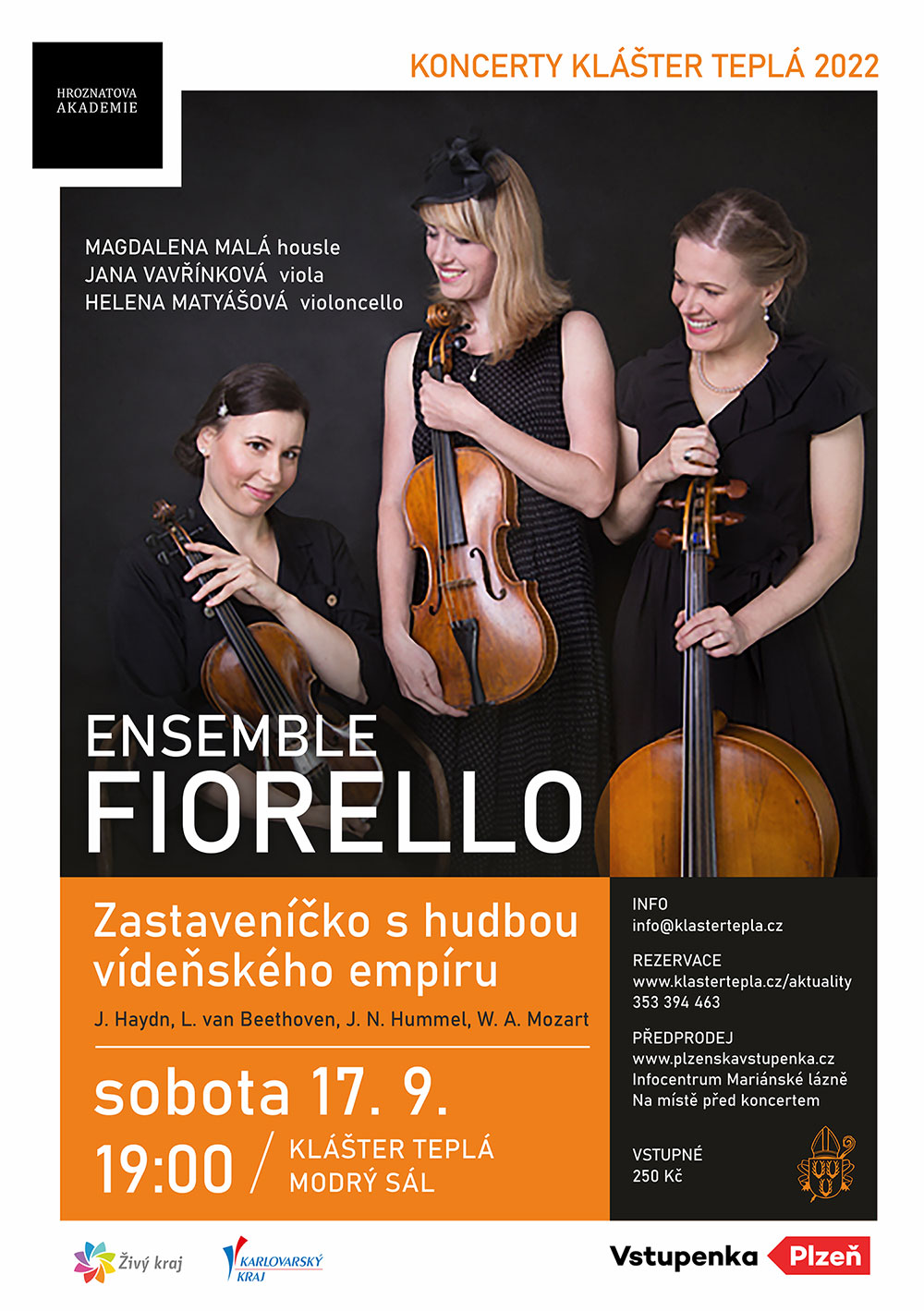 v sobotu 17. září 2022 vás od 19.00 hodin zveme do Modrého sálu kláštera na koncert ENSEMBLE FIORELLO – TRIO.